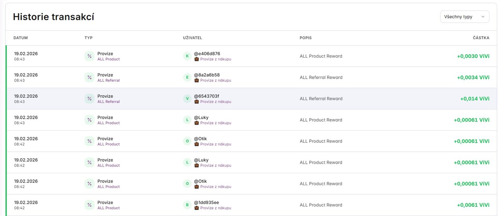 Důležité: ALL Referral je závislý na celkovém objemu transakcí v systému a na počtu uživatelů dané úrovně. Individuální výsledek proto není fixní a může se v čase měnit.